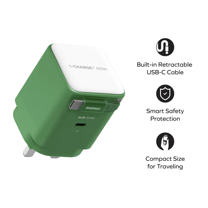 1-Charge+ 1-Port GaN Charger With Built-In USB-C Cable 65W