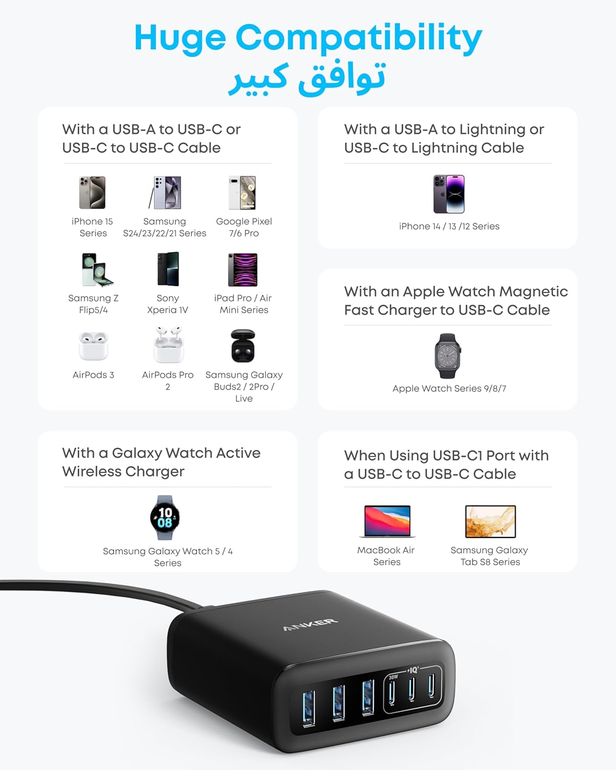 Anker USB C Charger, 6 Port Charging Station with 112W