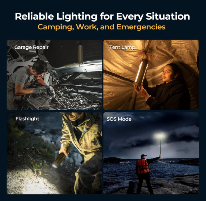 - 4 Lighting Modes: This portable light includes cool light (6000K), warm light (3000K), SOS, and flashlight modes—ideal for clear visibility, cozy lighting, or emergency use during outdoor adventures
