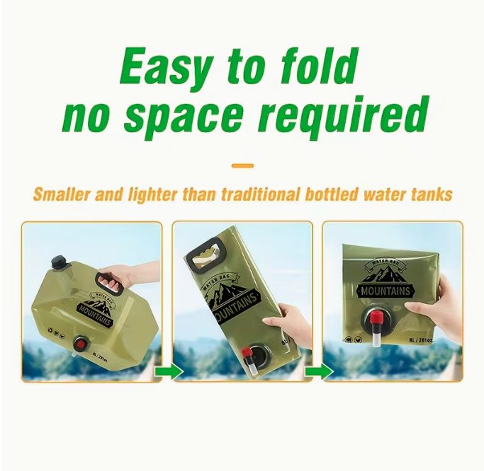 The container folds completely flat when empty, allowing you to store it easily in backpacks, cars, camping gear, or emergency kits without taking up unnecessary space.