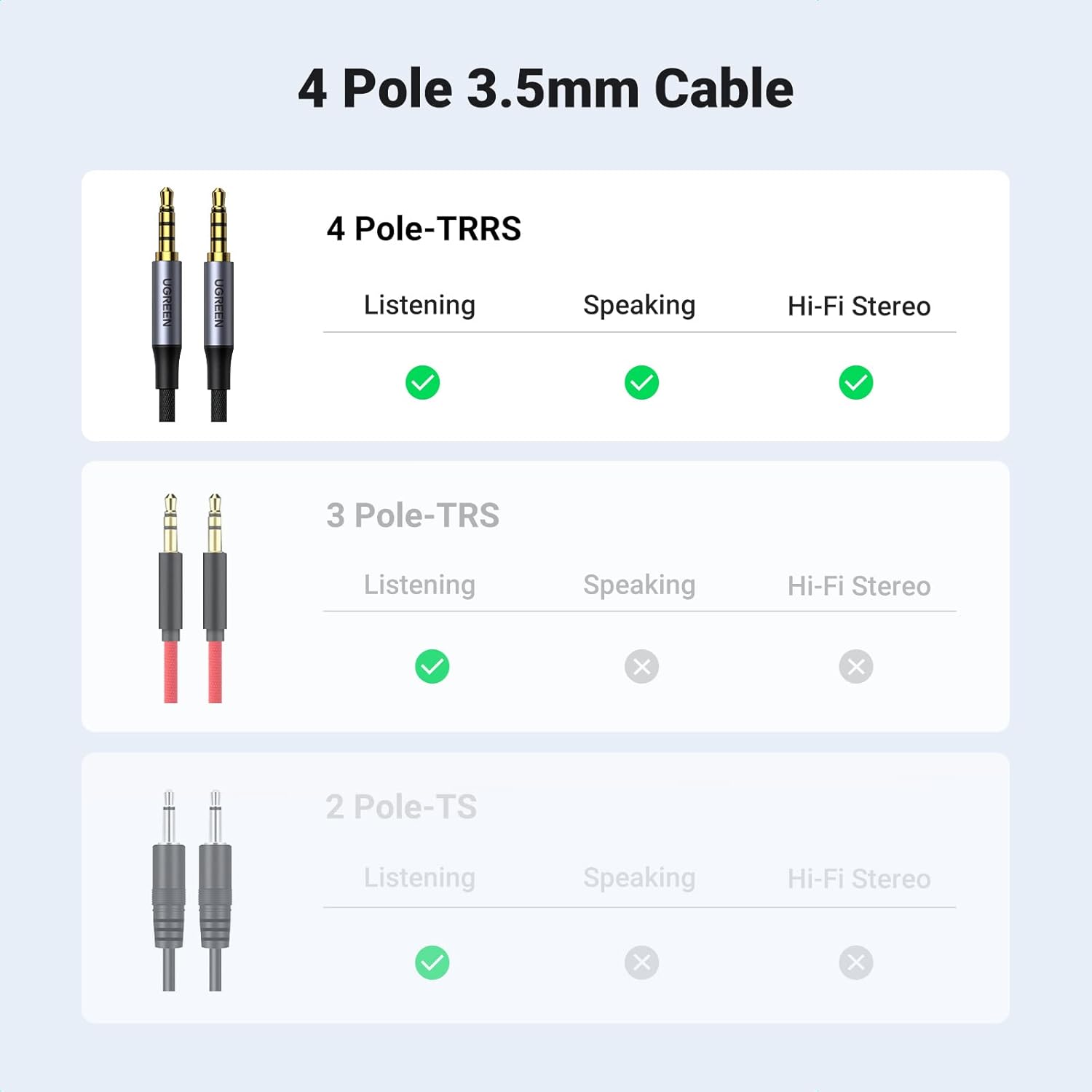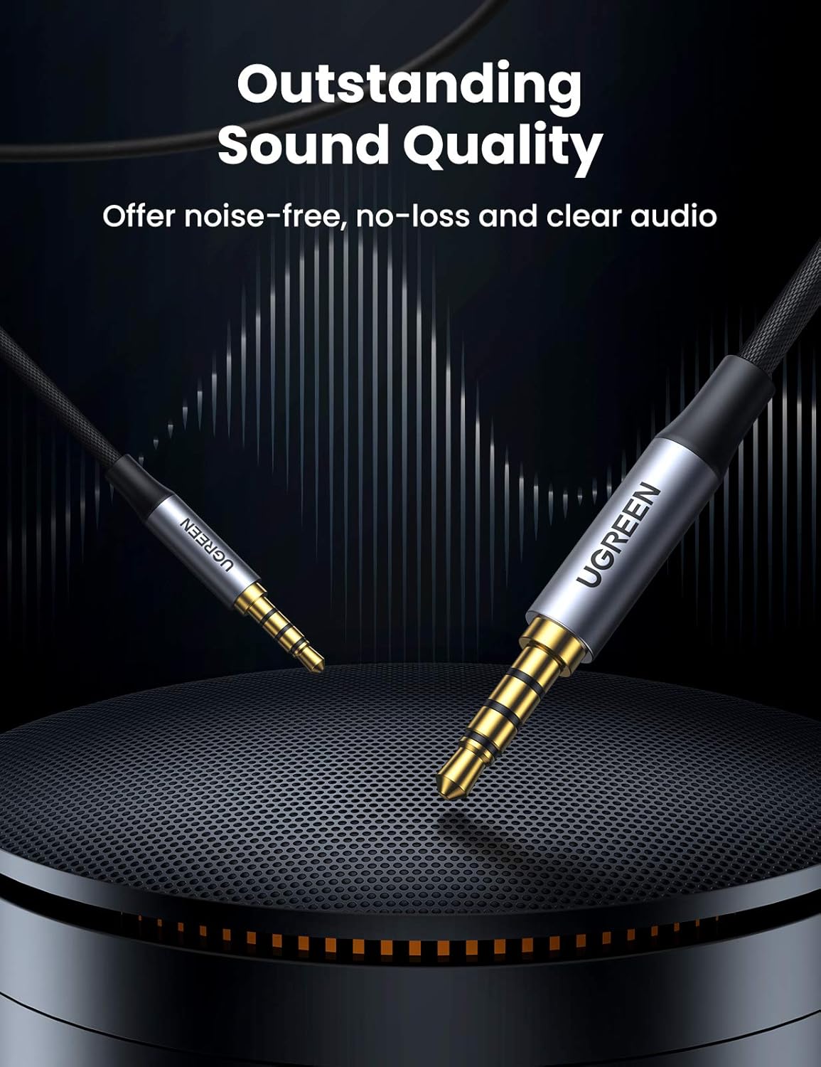 - 【Designed for Mic】UGREEN 3.5mm 4-Pole male Audio Cable provides a perfect way to support microphone and sound card. And enable you to connect a smartphone, MP4, tablet, laptop with a standard 3.5mm audio port and let you say goodbye to the current noise and enjoy the clear sound quality, which makes the voice transparent and delicate.